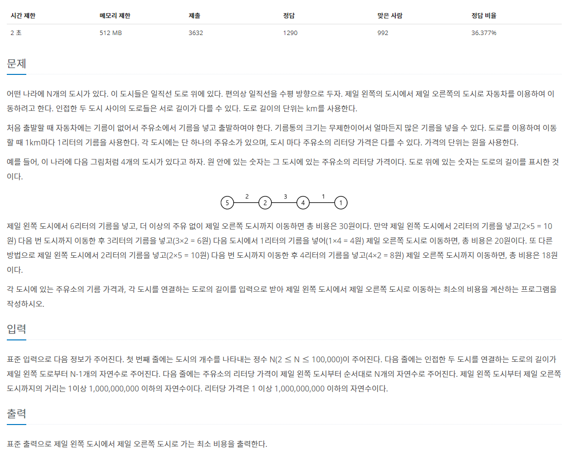 백준 13305번: 주유소 본문