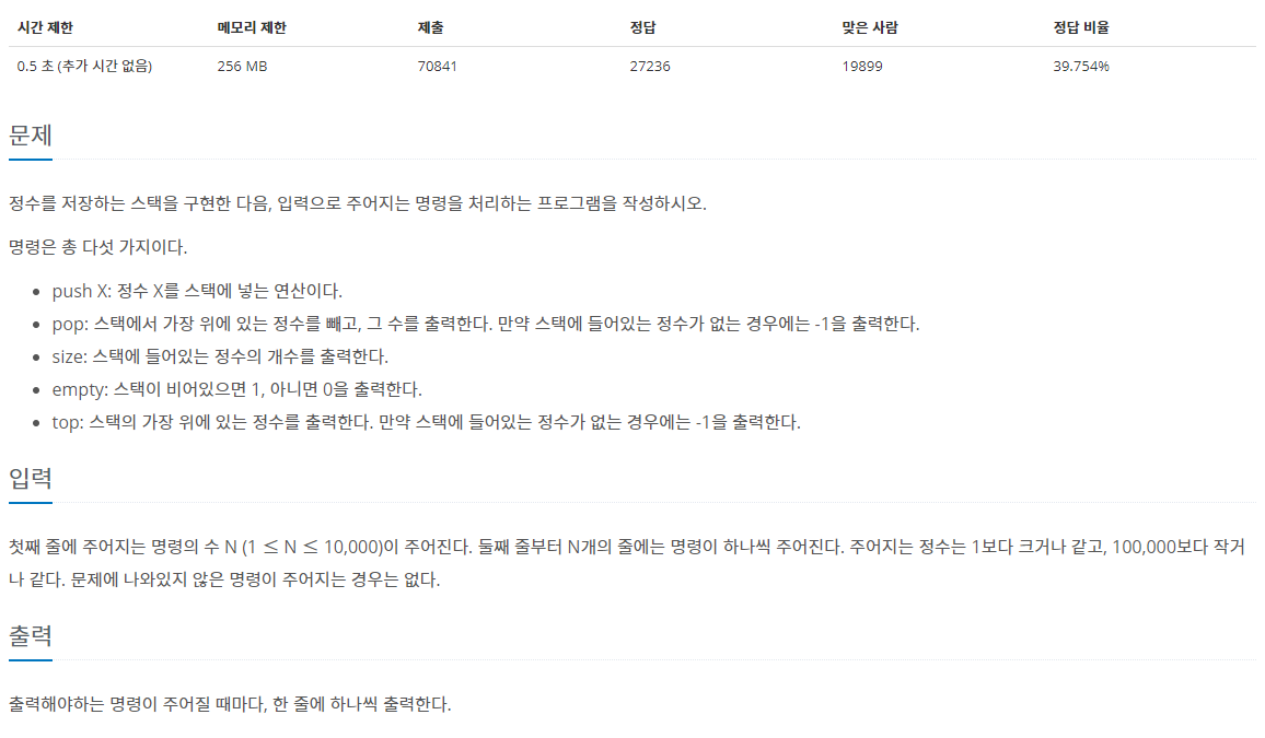 백준 10828번: 스택 본문