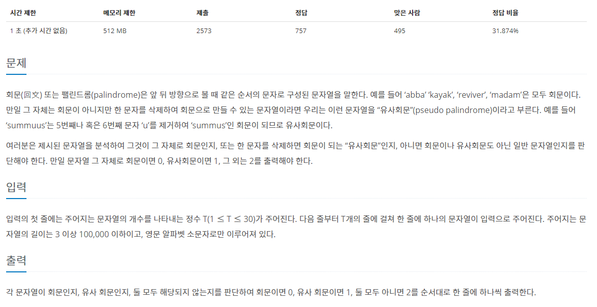 백준 17609번: 회문 본문