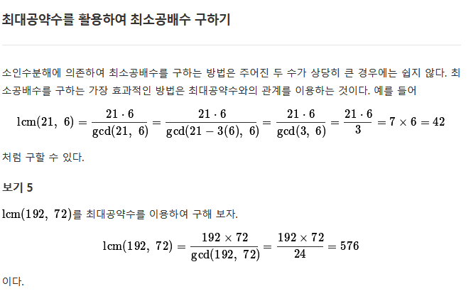 - 위 사진을 참고하여 매소드를 만들면 아래의 lcm(least common multiple) 매소드가 됩니다.